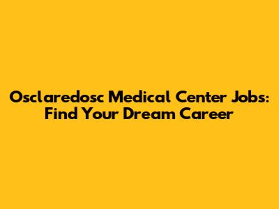Osclaredosc Medical Center Jobs: Find Your Dream Career