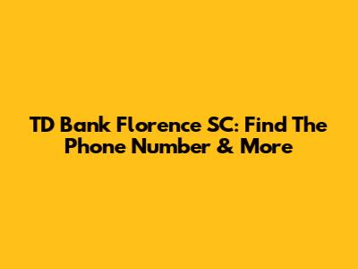 TD Bank Florence SC: Find The Phone Number & More