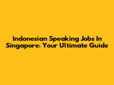 Indonesian Speaking Jobs In Singapore: Your Ultimate Guide