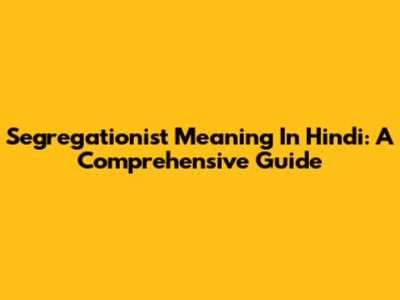 Segregationist Meaning In Hindi: A Comprehensive Guide