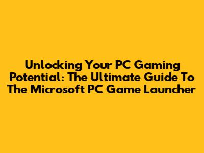 Unlocking Your PC Gaming Potential: The Ultimate Guide To The Microsoft PC Game Launcher