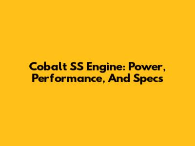 Cobalt SS Engine: Power, Performance, And Specs