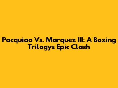 Pacquiao Vs. Marquez III: A Boxing Trilogy's Epic Clash