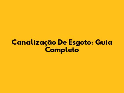Canalização De Esgoto: Guia Completo