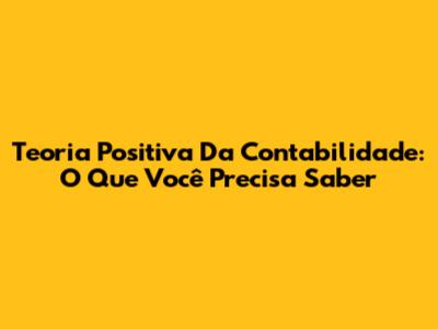 Teoria Positiva Da Contabilidade: O Que Você Precisa Saber