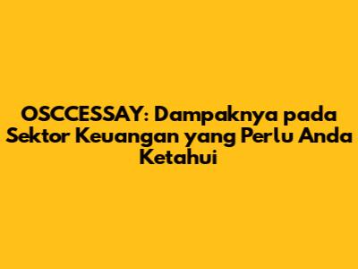 Industri keuangan terus berkembang, dan dengan munculnya teknologi baru, penting untuk memahami bagaimana inovasi ini memengaruhi lanskap ekonomi. Salah satu inovasi yang menarik perhatian adalah OSCCESSAY. Dalam artikel ini, kita akan membahas secara mendalam mengenai dampak OSCCESSAY pada keuangan, menjelajahi berbagai aspek dan implikasinya.