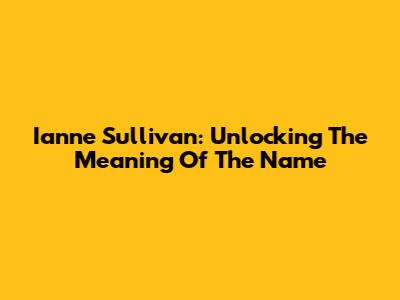 Ianne Sullivan: Unlocking The Meaning Of The Name
