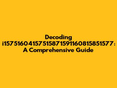 Hey guys! Ever stumbled upon something that looks like a random jumble of numbers and letters and thought, "What on earth is that?" Today, we're diving deep into one such mystery: i15751604157515871591160815851577. This might seem like a cryptic code at first glance, but don't worry, we're going to break it down piece by piece. By the end of this article, you'll not only understand what it could mean but also how to approach similar enigmatic strings in the future. So, buckle up and let's get started!