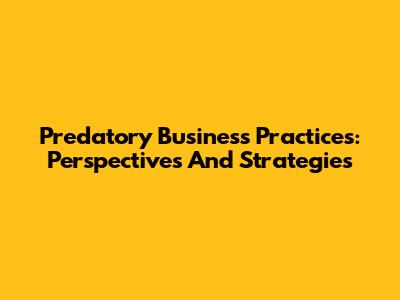 Predatory Business Practices: Perspectives And Strategies