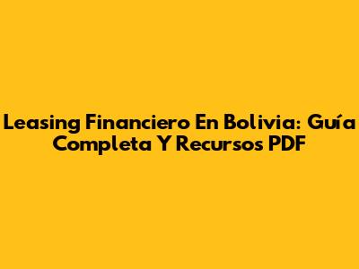 Leasing Financiero En Bolivia: Guía Completa Y Recursos PDF