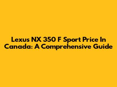 Lexus NX 350 F Sport Price In Canada: A Comprehensive Guide