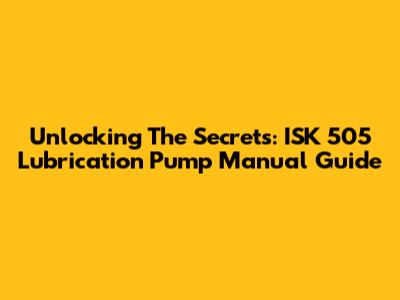 Unlocking The Secrets: ISK 505 Lubrication Pump Manual Guide