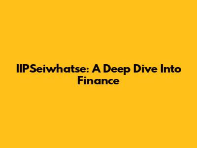 IIPSeiwhatse: A Deep Dive Into Finance