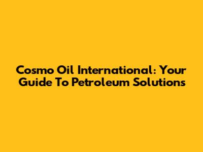 Cosmo Oil International: Your Guide To Petroleum Solutions