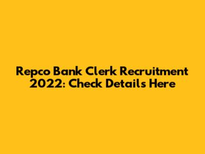 Repco Bank Clerk Recruitment 2022: Check Details Here