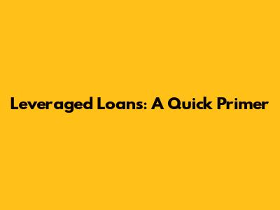 Leveraged Loans: A Quick Primer