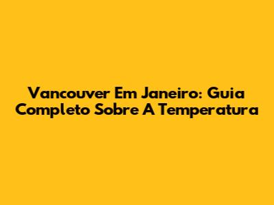 Vancouver Em Janeiro: Guia Completo Sobre A Temperatura