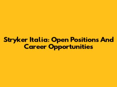 Stryker Italia: Open Positions And Career Opportunities