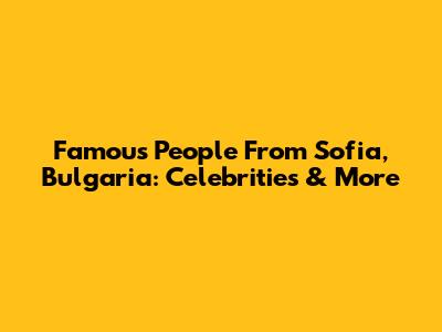 Famous People From Sofia, Bulgaria: Celebrities & More