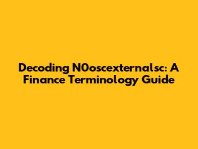 Decoding N0oscexternalsc: A Finance Terminology Guide