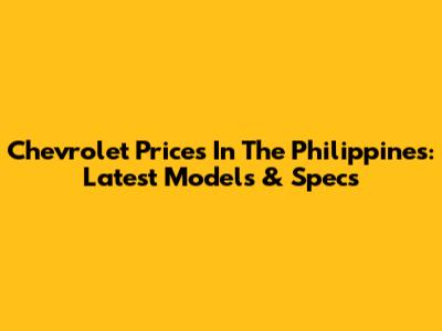 Chevrolet Prices In The Philippines: Latest Models & Specs