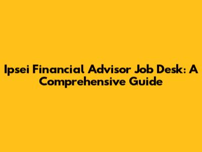 Hey everyone, let's dive into the Ipsei Financial Advisor Job Desk! If you're curious about what it takes to be a financial advisor, especially at a place like Ipsei, you've come to the right spot. We'll break down the responsibilities, what you can expect, and how to potentially land a gig in this exciting field. This guide is crafted to give you a clear understanding of the Ipsei Financial Advisor Job and help you assess if it's the right career move for you.