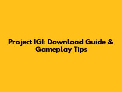 Project IGI: Download Guide & Gameplay Tips