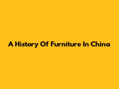 A History Of Furniture In China