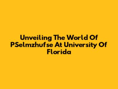 Unveiling The World Of PSelmzhufse At University Of Florida