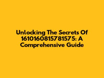 Unlocking The Secrets Of 1610160815781575: A Comprehensive Guide