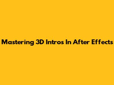 Mastering 3D Intros In After Effects