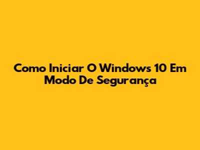 Como Iniciar O Windows 10 Em Modo De Segurança
