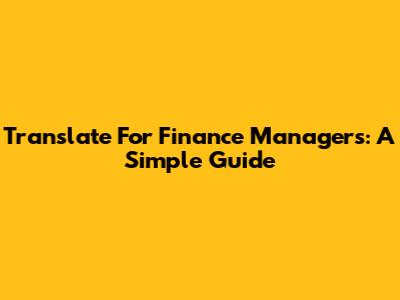 Translate For Finance Managers: A Simple Guide