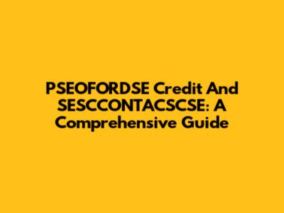 PSEOFORDSE Credit And SESCCONTACSCSE: A Comprehensive Guide