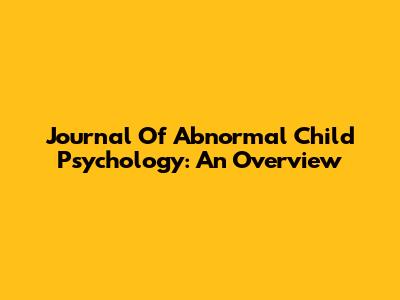 Journal Of Abnormal Child Psychology: An Overview