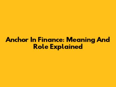Anchor In Finance: Meaning And Role Explained
