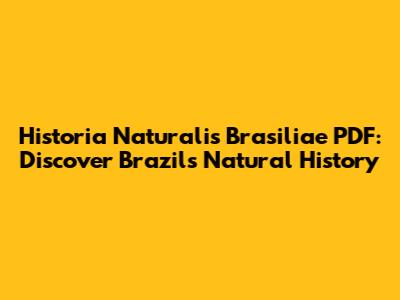 Historia Naturalis Brasiliae PDF: Discover Brazil's Natural History