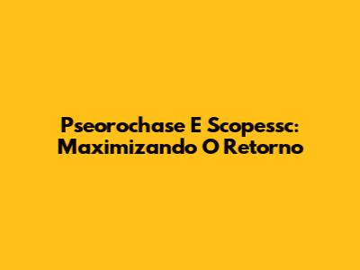 Pseorochase E Scopessc: Maximizando O Retorno