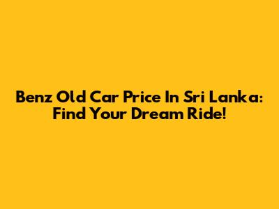 Benz Old Car Price In Sri Lanka: Find Your Dream Ride!