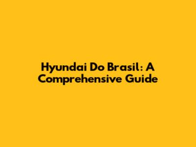 Hyundai Do Brasil: A Comprehensive Guide