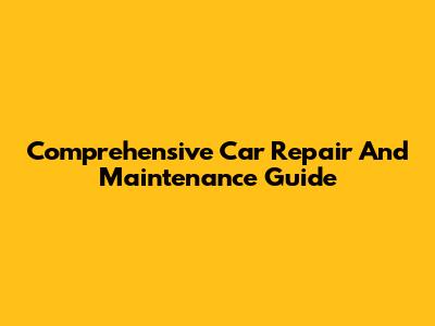 Comprehensive Car Repair And Maintenance Guide