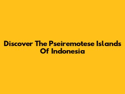 Discover The Pseiremotese Islands Of Indonesia