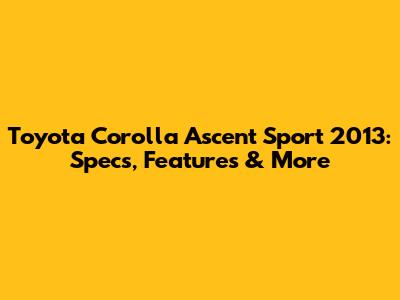 Toyota Corolla Ascent Sport 2013: Specs, Features & More