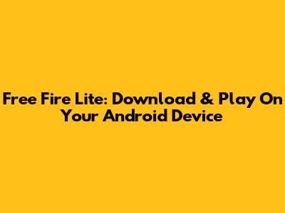 Free Fire Lite: Download & Play On Your Android Device