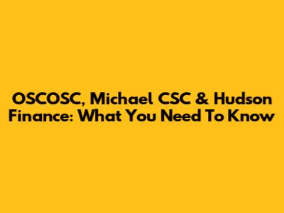OSCOSC, Michael CSC & Hudson Finance: What You Need To Know