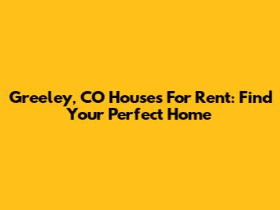 Greeley, CO Houses For Rent: Find Your Perfect Home