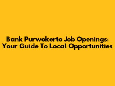Bank Purwokerto Job Openings: Your Guide To Local Opportunities