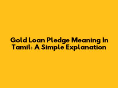 Gold Loan Pledge Meaning In Tamil: A Simple Explanation