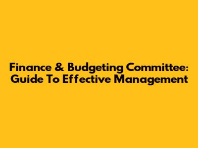 Finance & Budgeting Committee: Guide To Effective Management