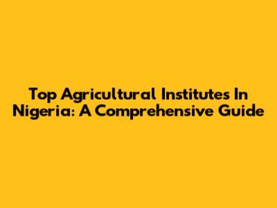 Top Agricultural Institutes In Nigeria: A Comprehensive Guide